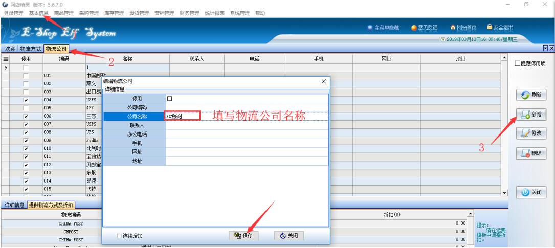 基本信息-物流公司,在公司名称中填写具体的物流公司名称,如下图:
